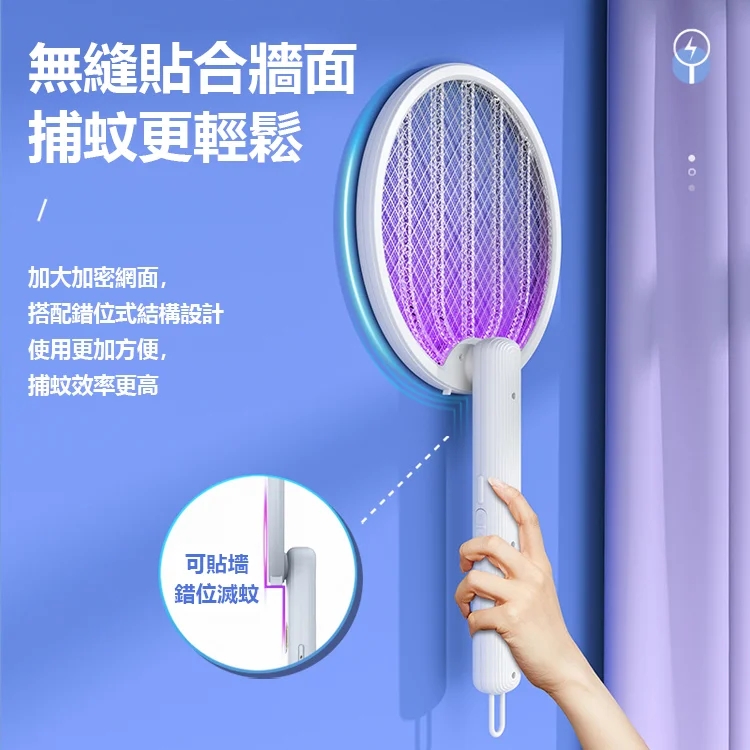 7分鐘前熱賣 四合一多功能電蚊滅蚊拍,立式/壁挂/手持式/可摺叠,雙效自動滅蚊! - 【限時下殺】1入組-NT$990